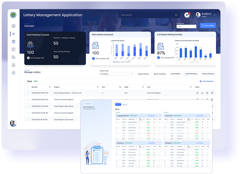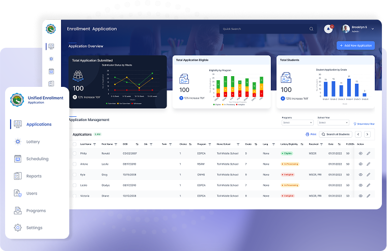 Pull detailed reports on applications, placements, and lottery logic with just a few clicks.